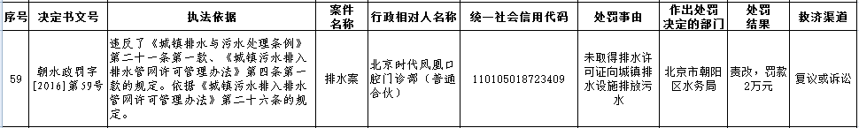 朝阳区水务局行政处罚事项公示清单