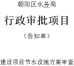 朝阳区水务局(审批年用水量10万吨(含)以内或建筑面积10万平方米(含)以下的建设项目)。